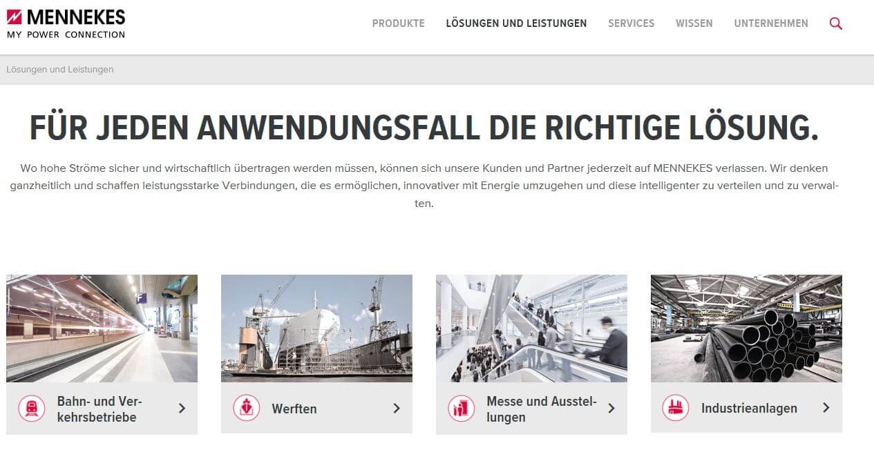 Fazit: Mit dem neuen Internetauftritt dokumentiert MENNEKES in eindrucksvoller Weise seine Lösungskompetenz für eine sichere und intelligente Verteilung von Energie in nahezu allen Lebensbereichen – von öffentlichem Leben über die Wirtschaft bis hin zu Verkehr und Infrastruktur.