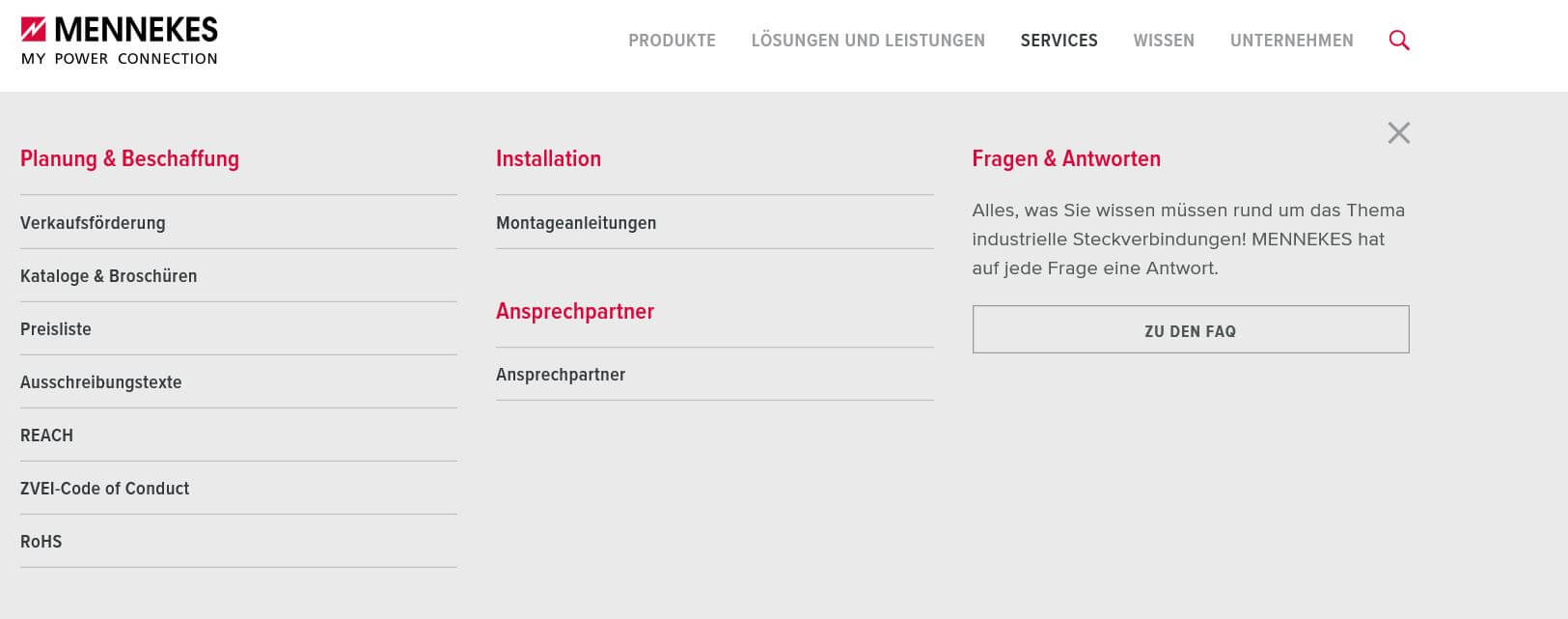 Sauber gelöst wurde mit dem Internet-Konzept nicht nur die Aufgabe, die neue Produktstruktur übersichtlich und logisch zu präsentieren. Perfektioniert wurden bei der Gelegenheit auch die Bedienungsfreundlichkeit und die Performance der sehr dynamisch wirkenden Internetseite, die mit schnellen Ladezeiten und übersichtlicher Menüführung überzeugt. Dazu eine klare thematische Ausrichtung auf die für MENNEKES-Produkte relevanten Industrie- und Dienstleistungsbereiche.