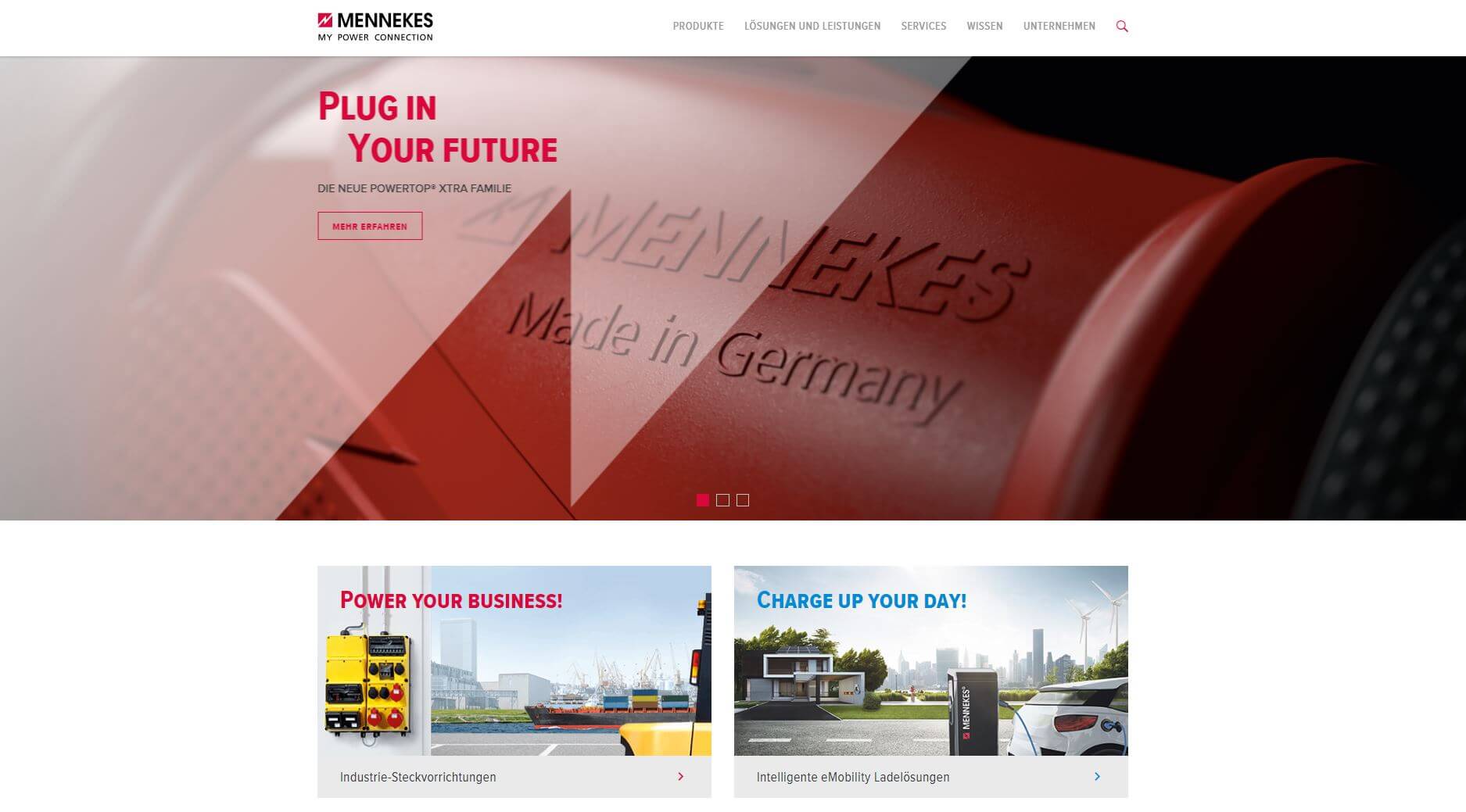 Noch fokussierter, noch übersichtlicher und noch benutzerfreundlicher präsentiert sich die starke Marke MENNEKES nach einem umfassenden Internet-Relaunch ab sofort im Web. Ein durchgängiges Farbkonzept, großflächige Bildsprache und stringente Gliederung in die beiden großen Bereiche Industrie-Steckvorrichtungen und Ladelösungen für die Elektromobilität sorgen für sauber und übersichtlich strukturierte Informationen – und ermöglichen dem Nutzer eine einfache und schnelle Orientierung.