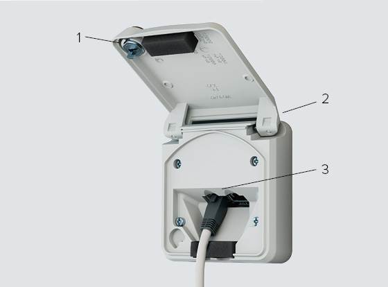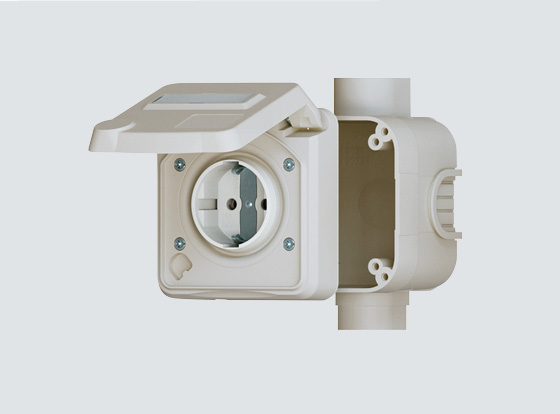 Det store koblingsrommet gir plass til tilførselskabler opptil 6 mm². Underdelen kan roteres 180°, slik at kabelinnføringen nedenfra er mulig uten ekstra arbeid. Beskyttelsesgrad IP54 (beskyttet mot støv og sprutvann) gjør påveggsuttakene sikre for mange ulike bruksområder. I tillegg finnes det ekstra membraner i kapslingen.