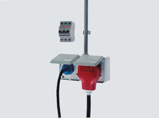 En ofte valgt kombinasjon av uttak: 16 A CEE og SCHUKO®. Ved tilkobling av denne kombinasjonen via én felles tilførsel er det obligatorisk med en 3‑polet automatsikring.