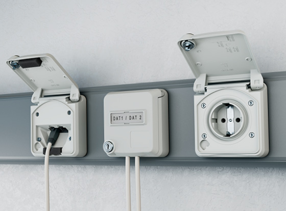 Allsidig og pålitelig: Våre Cepex‑datauttak er for eksempel godt egnet for kontrollrom, lagerområder, laboratorier, flyplasser og produksjonslinjer. Driften skjer med vanlige patchkabler. De kan kombineres med Cepex‑uttak, CEE og SCHUKO®. Uansett om det er påvegg, innfelt eller i kabelkanal – disse uttakene passer.