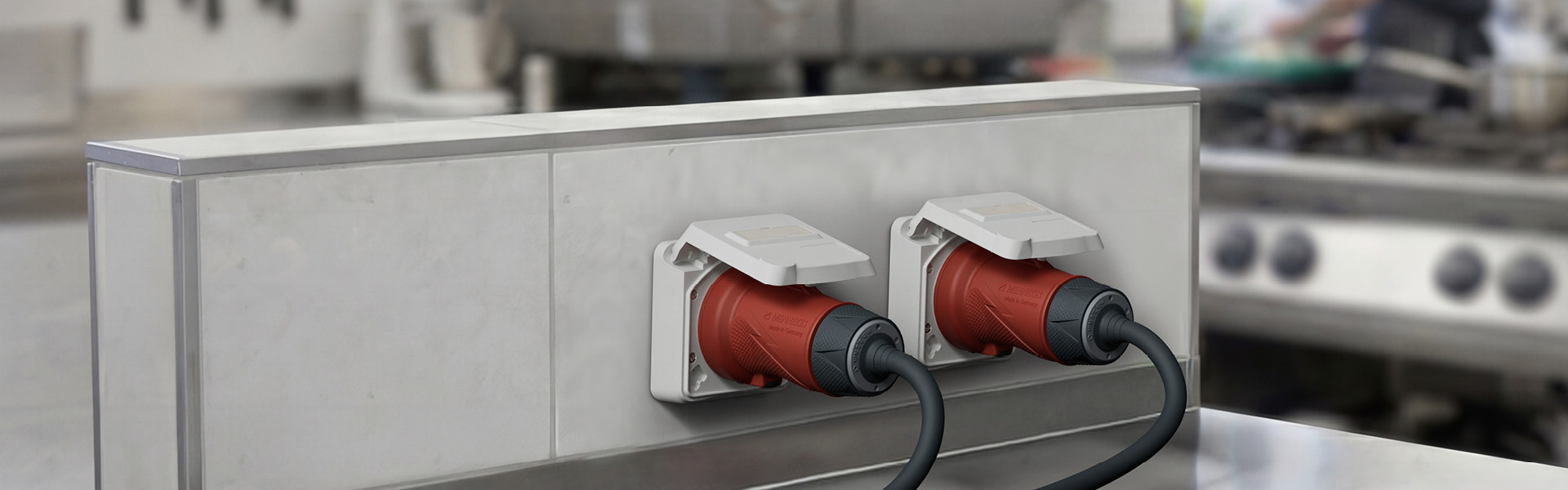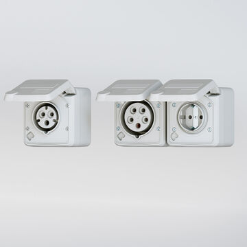 En ofte valgt kombinasjon av uttak: 16 A CEE og SCHUKO®. Ved tilkobling av denne kombinasjonen via én felles tilførsel er det obligatorisk med en 3‑polet automatsikring.
