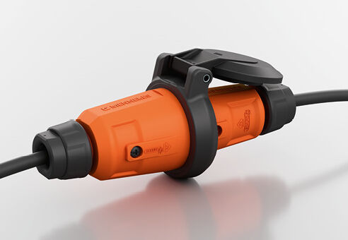 De robuste kapslingene tåler dessuten belastninger på opptil ett tonn. Det selvstengende lokket på skjøtekontaktene garanterer IP54‑beskyttelse, og i drift tåler kontakter og uttak temperaturer fra –30 °C til +40 °C. Den skrudde tetningen på kabelinnføringen og den romslige tilkoblingsplassen gjør monteringen spesielt enkel og komfortabel.