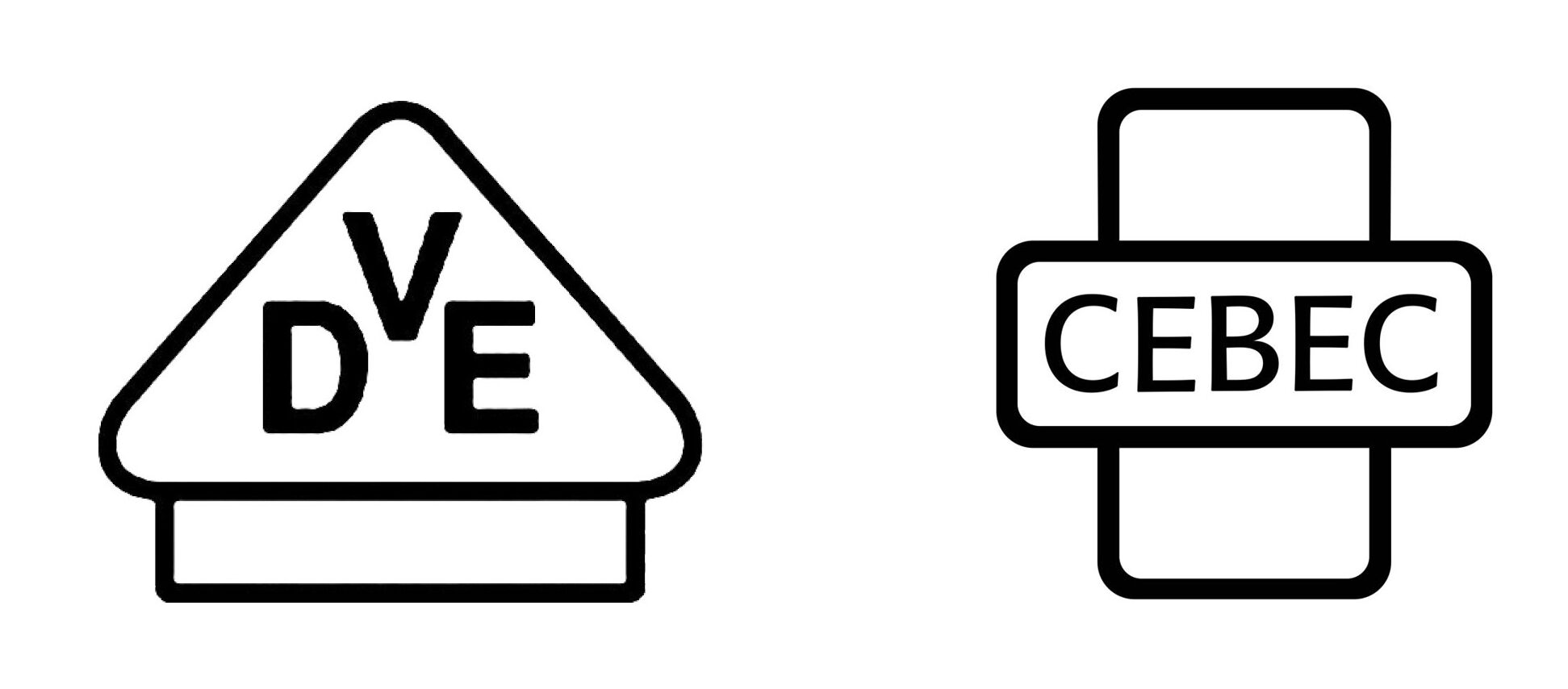 SCHUKO® skjøtekontakter med IP54‑beskyttelse har en VDE‑sertifisering, mens de fransk‑belgiske skjøtekontaktene har en CEBEC‑sertifisering.